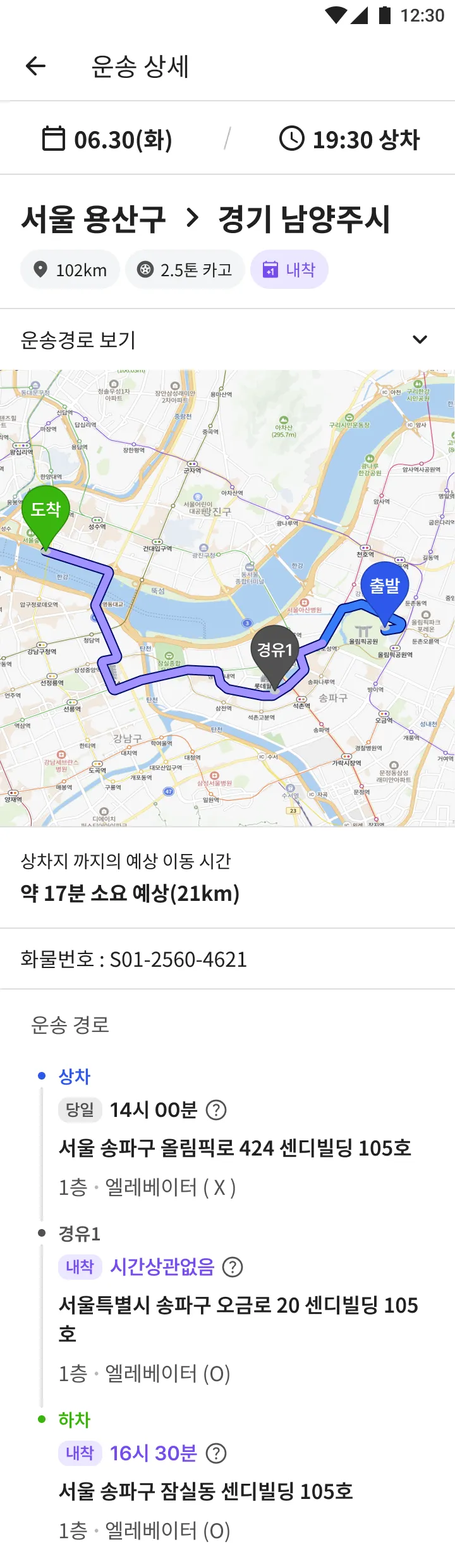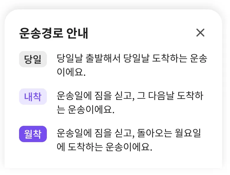 드라이버님들께서 보내주신 소중한 의견이 반영되었는데요,🙂 도착 시간이 있는 운송 정보를 더 명확히 이해하실 수 있도록 개선했어요.