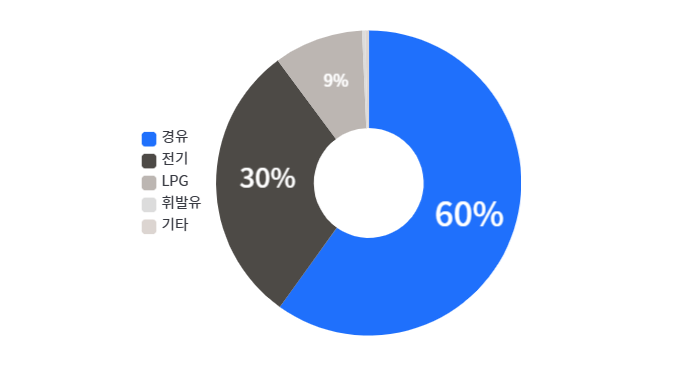 설문에 참여한 581명의 드라이버님들 중, 348명이 차량이 경유 차량이었어요!