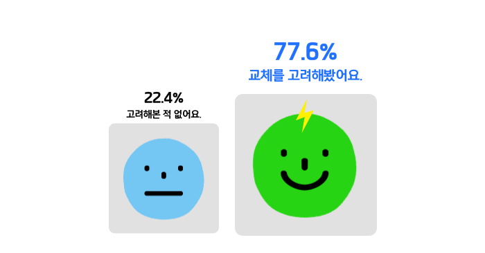 설문에 참여한 드라이버님들 중 78%가 교체를 고려해봤다고 해요.