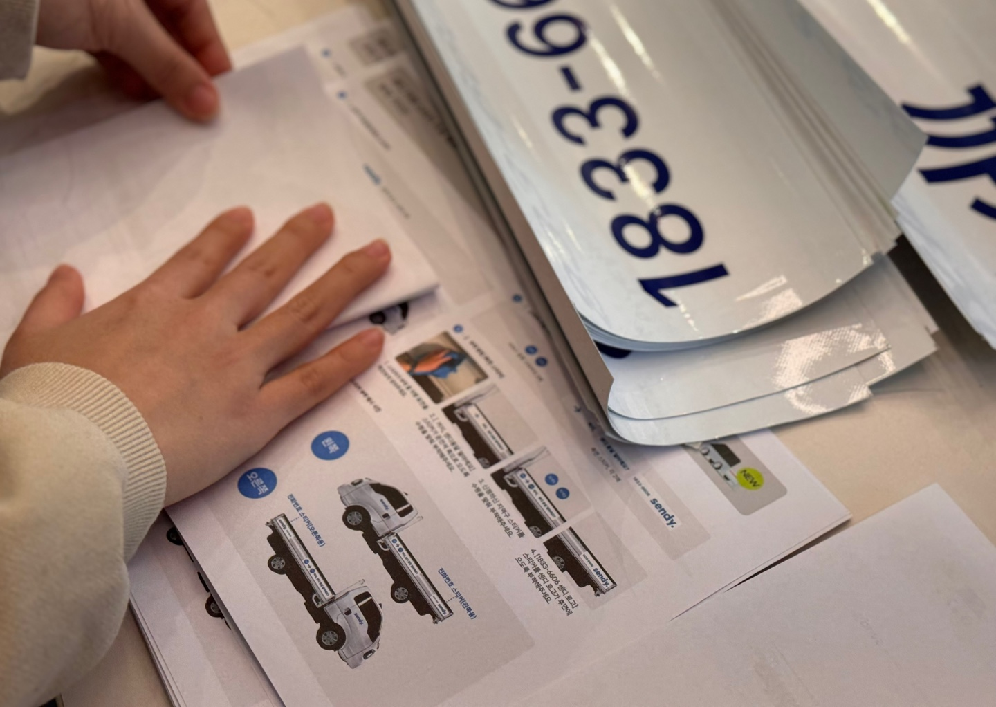 센디 드라이버님과 다양한 스티커를 직접 붙여보며 차량과 잘 어울리는 시안을 함께 찾아봤어요.
