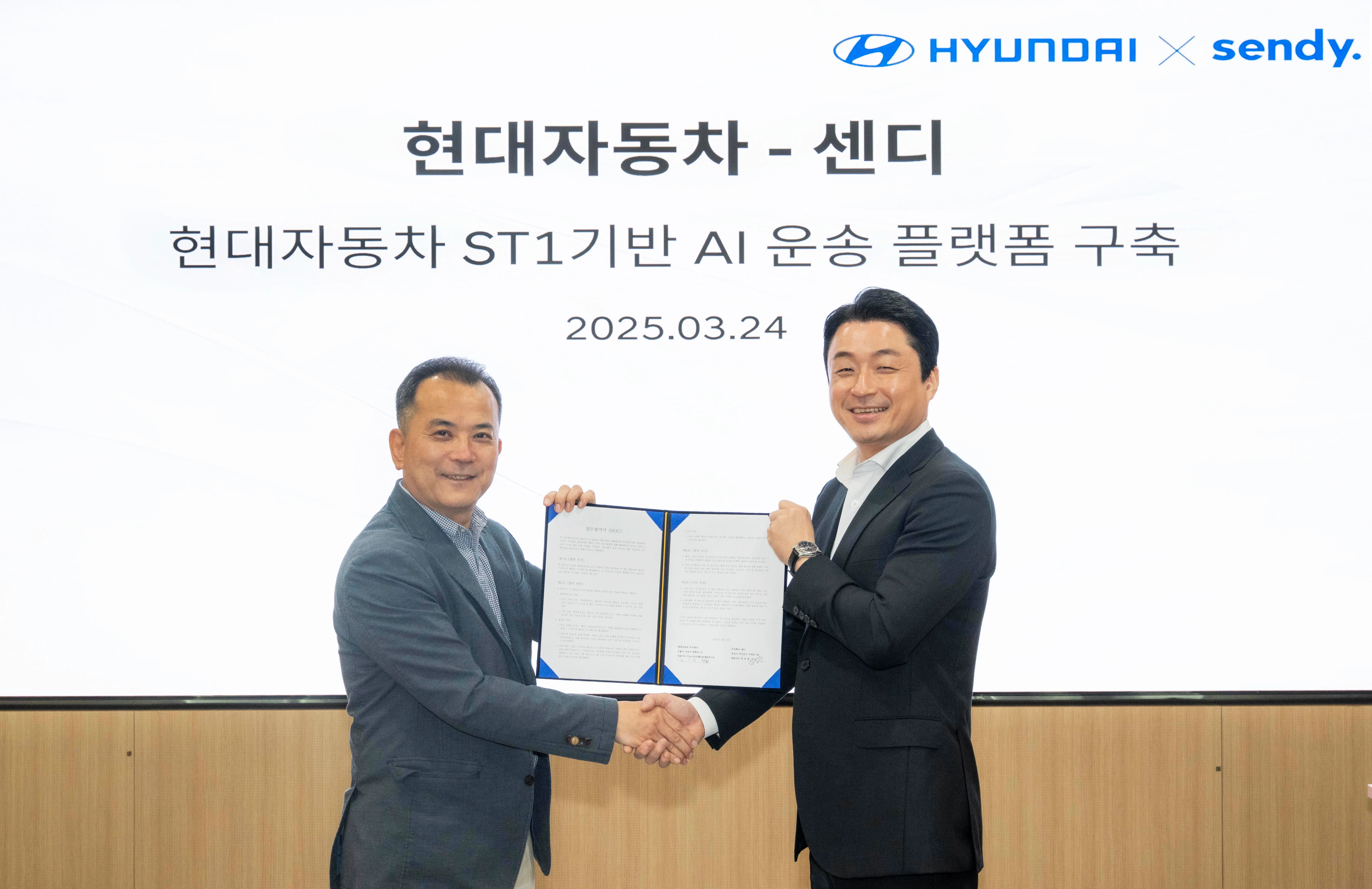 센디가 현대자동차와 협약을 맺고, 새로운 운송 시스템을 준비하고 있다는 이야기요! 전기 화물차 st1에 센디 드라이버 시스템이 탑재된다는 그 내용이었죠.