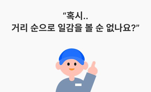당일 또는 익일 운송이 많은 대형 차량 드라이버님께는 '거리 순' 정렬을 추천드려요!