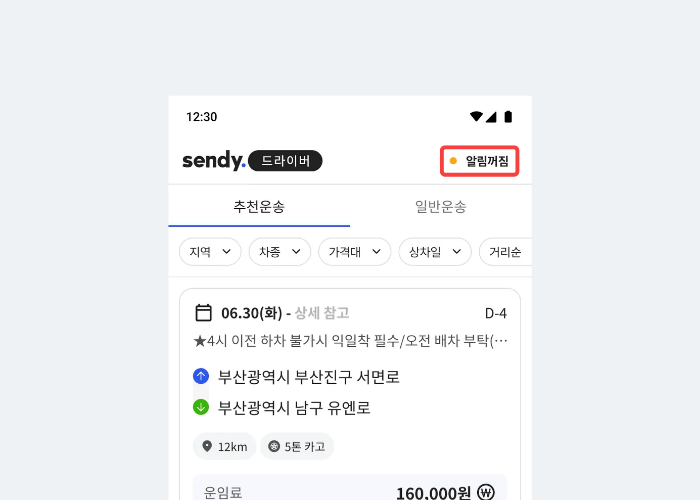 센디 드라이버 앱에 '알림 끄기' 기능이 출시되었어요.
