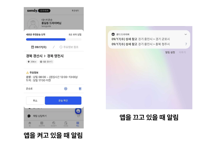 앱을 켜 두었을 때나 꺼 두었을 때 모두 설정한 선호지역 운송만 받아보실 수 있습니다.