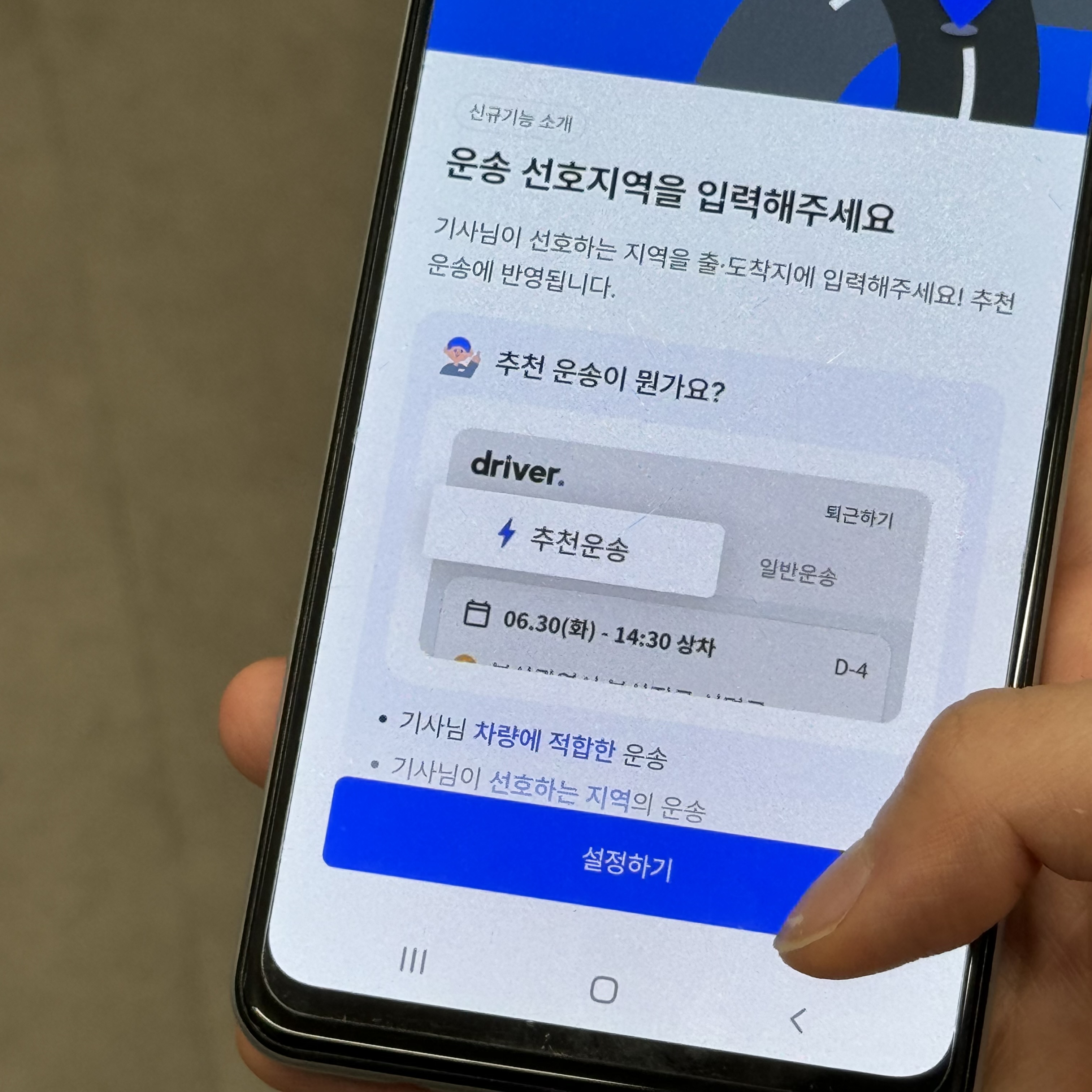 드라이버님이 직접 설정한 선호지역을 기준으로 운송 알림이 발송돼요.