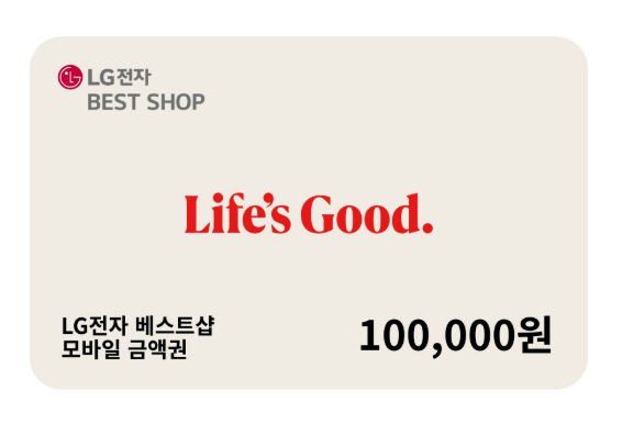 사장님께서 원하시는 가전제품과 함께 한 여름 든든하게 나시도록, LG전자 베스트샵 모바일 상품권 10만원정 1장을 보내드립니다!