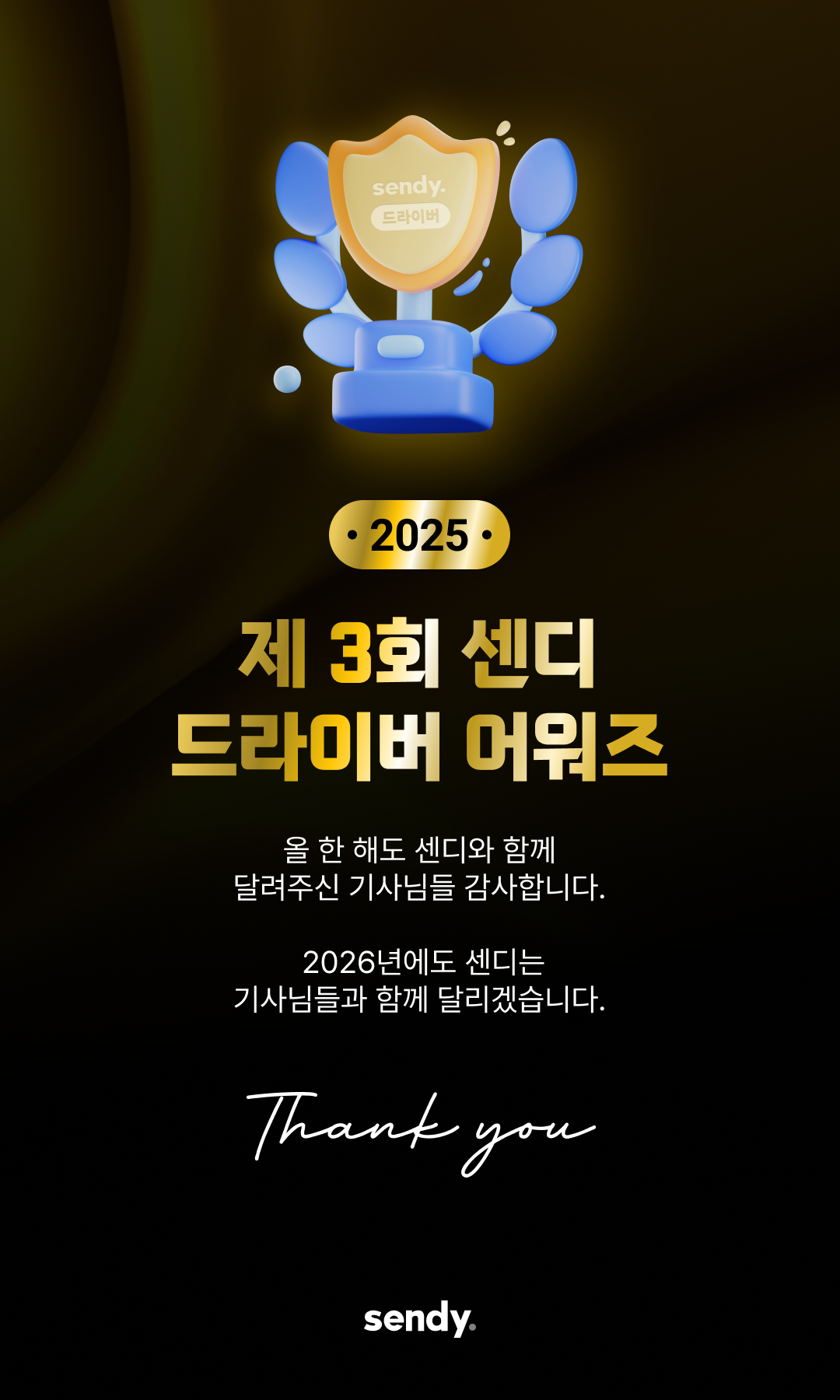 2026년 새해에도 센디는 기사님들의 든든한 파트너로서 더 힘차게, 좋은 일만 가득하도록 함께 달리겠습니다.