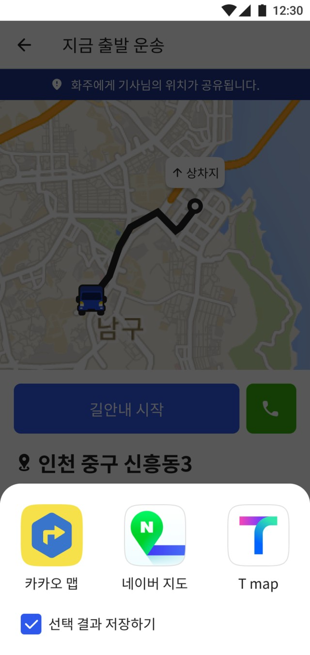 ▼(운송 진행)[길안내 시작] 버튼을 누르면 내비를 켤 수 있습니다.