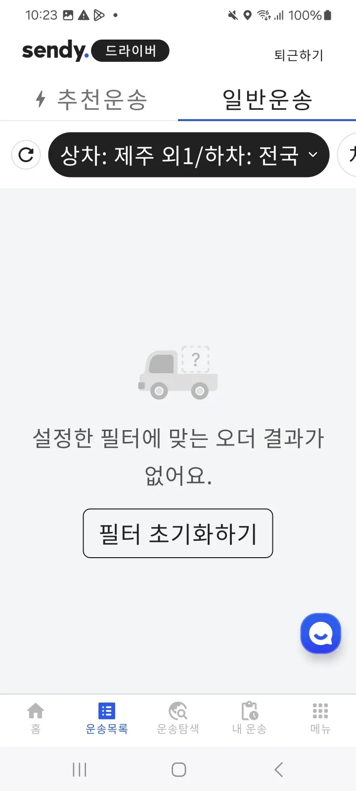 필터한 운송이 없을 때에는 [필터 초기화하기]를 할 수 있어요.