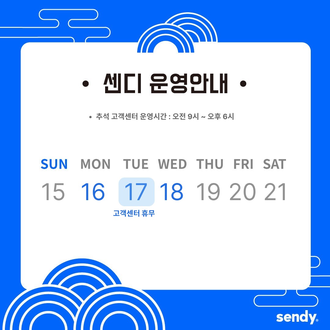 센디 고객센터 일정을 안내 드리겠습니다:)