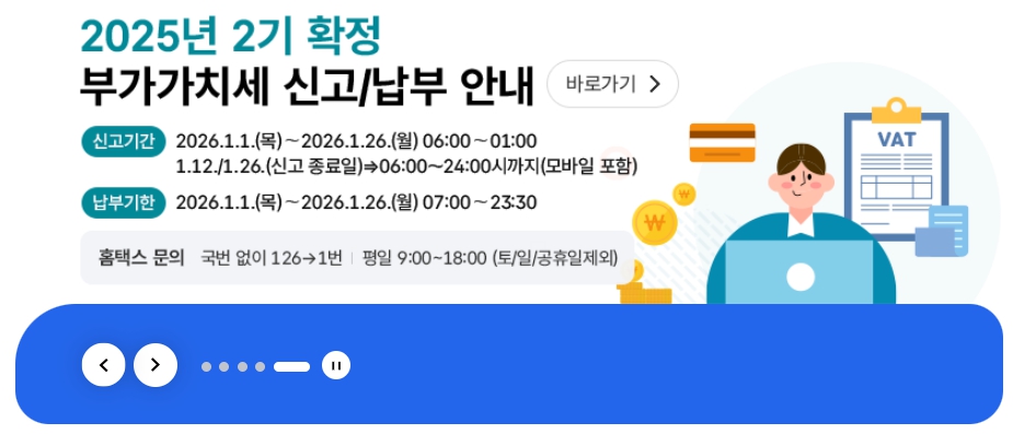 이번 안내가 부가세 신고 준비에 조금이나마 도움이 되길 바랍니다. 신고 과정에서 기준 확인이 필요하신 경우, 국세청 안내를 함께 참고해 주세요.